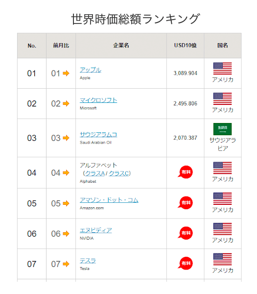 世界時価総額ランキングTOP50の内、